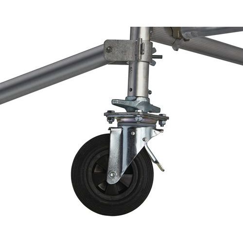 Hegesztett alumínium szerkezet dupla korláttal. Ø50 mm állványcsövek és merevítők. Levehető alumínium lábdeszkákkal (150 mm). Gyors összeszerelés. Csúszásgátló állítható merevítő lemez beépített szinteltolással. Állítható és reteszelhető Ø200 mm kerekekkel. Szabadalmaztatott Ergoblock® csatlakozórendszer a rendkívül megbízható, egy műveletben történő reteszelésért.