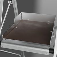 Raptorscopic kétpolcos, állítható alumínium dobogók. Leesés elleni védelem 4 oldalról szilárd, félautomatikusan záródó védőkorláttal. A csúszásgátló fokok mélysége 80 mm (szilárd szint) illetve 60 mm (teleszkópos szint). Levehető, 25 kg teherbírású rekeszes szerszámtartóval és 10 kg teherbírású beépített kampókkal. A teleszkópos szint lehetővé teszi a szinteltolást. Intuitív és biztonságos rendszerű 23 centiméterenkénti magasságállítással. 500 x 400 mm-es csúszásgátló padló környezetbarát fából. Ergonomikus munkaterület. Kihúzható, milliméterenként állítható kitámasztókkal. Max. terhelés (kg) : 150 kg