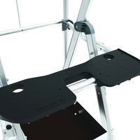 Raptor duplapolcos munkaállványok. Leesés elleni védelem 4 oldalról masszív, hátoldalon félautomatikusan záródó védőkorláttal. Csúszásgátló 80 mm-es fokokkal. Levehető, 25 kg teherbírású rekeszes szerszámtartóval és max. 10 kg teherbírású beépített kampókkal. Kihúzható, milliméterenként állítható kitámasztókkal. Rendkívül kényelmes, 590 x 400 mm-es csúszásgátló padlóval. Ergonomikus és kényelmes munkaterület. Ø175 mm terepkerekekkel.