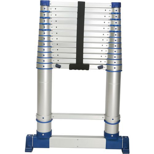 Ultra kompakt, könnyű teleszkópos alumínium létrák. Állítható magassággal, hogy megfelelhessen a helyi korlátozásoknak. Az alumínium gyűrűs tolórendszer megakadályozza az eltömődést és rendkívüli stabilitást garantál. Teleszkópos, az utolsó fok kitolásával automatikusan kioldó stabilizáló támasztékok. Zöld visszajelző. Feszítő hevederek. 2 gombos összecsukás. A gyűrűknek köszönhetően a létra biztonságosan, akadásmentesen mozgatható. Fékrendszerrel a fokozatos kioldáshoz. Megfelel az EN 131//6 (V2015) szabványnak