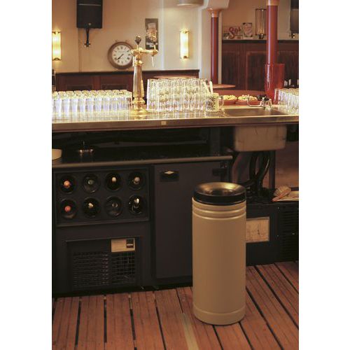 Kör alakú hulladékgyűjtő fekete duplafalú fedéllel.