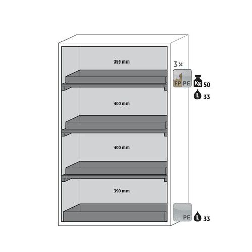 Tűzvédelmi szekrény gyúlékony anyagokra Asecos, 1968 x 1196 x 616 mm, PP, 3 kármentőpolc