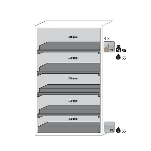 Tűzvédelmi szekrény gyúlékony anyagokra Asecos, 1968 x 1196 x 616 mm, PP, 4 kármentőpolc