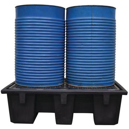 Ezt a tárolóedényt úgy tervezték, hogy lehetővé tegye az európai raklapok egyszerű kezelését. A kád egyik oldalán egy európai raklapemelő villái számára kialakított átjáró található. A kád kisebb hordók vagy két 220 literes hordó tárolására alkalmas. függőleges helyzetben. Modern kialakítású és szállító fogantyúkkal rendelkezik. A felület csúszásgátló kezeléssel és UV-védelemmel van ellátva a hosszú élettartam érdekében. Gyártói garancia az ügyfélnek : 10 év Max. sztatikus terhelés (kg) : 600 kg Sav- és lúgállóság