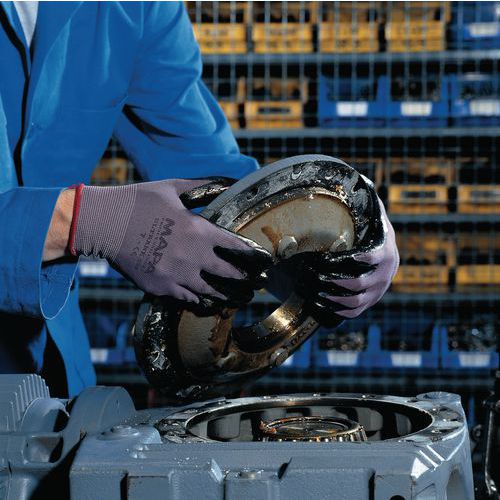 Szilikon- és DMF-mentes. Vízálló a bőr védelme érdekében. A markolat csökkenti az izomfáradást. Kiváló tapadás a zsíros vagy piszkos alkatrészek kezelésekor. következő munkák elvégzésére használható: Mérnökség/Gépjárműipar Kisalkatrészek válogatása Csavarozás és csavarozás Szivattyúgyártás Precíziós összeszerelés Köztestületek (műszaki ellenőrzés) és más iparágak Kisebb általános karbantartási munkák Csomagolás Könnyű raktárkezeléshez Építőipar (fémmunkások / lakatosok / festők / mázolók) Fémszerkezetek manipulálása, szerelése Felületek előkészítése CE