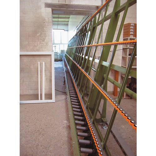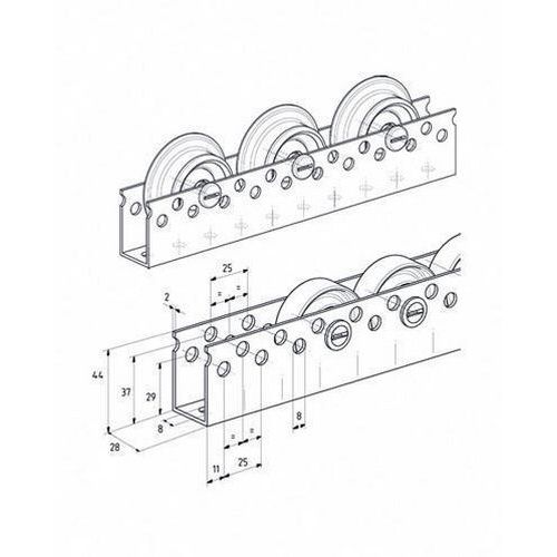 Lécek egyszerű csigákkal és csúszó csapággyal. Gravitációs szállítószalagok, szerelősorok, lejtős állványok és csúszók univerzális elemeiként szolgálnak. U profil horganyzott lemezből. A profil alsó oldalán lévő nyílások a padlóhoz való rögzítésre szolgálnak.