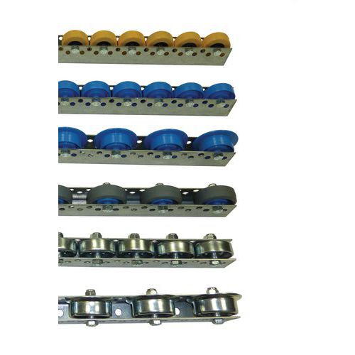 Univerzális görgős szállítólécek, poliuretán, 41 mm-es szélesség, 50 - 125 mm-es raszter Univerzális görgős szállítólécek, poliuretán, 41 mm-es szélesség, 50 - 125 mm-es raszter