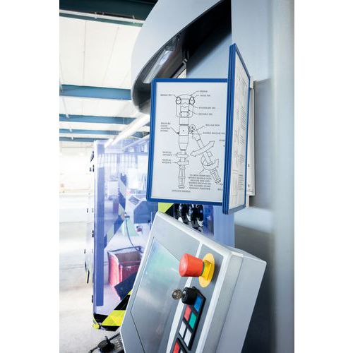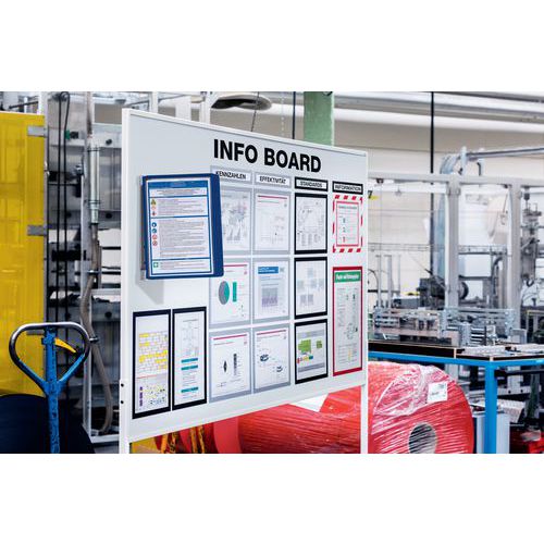 Egy tartó 5 db tükröződésmentes bevonatú A4-es lapot tartalmaz. Könnyű és biztonságos rögzítés bármilyen fémfelületre. Több tartó összekapcsolásának lehetősége.