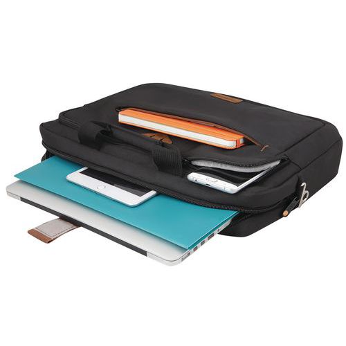 Laptop táska rekesszel akár 10,5 hüvelykes táblagépek számára. Különféle tartozékok és dokumentumok tárolására alkalmas rekesszel vannak felszerelve. Kényelmes megerősített fogantyúk, elöl és hátul cipzáras zsebek. Újrahasznosított anyagból készült.