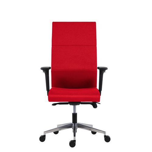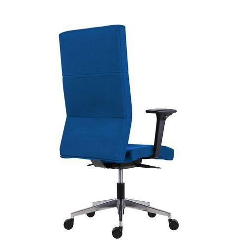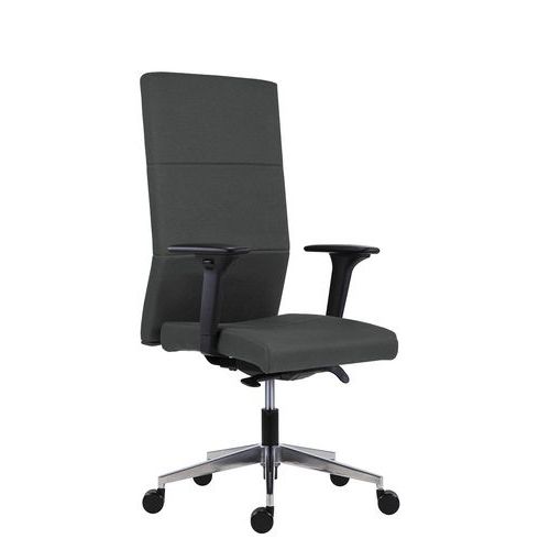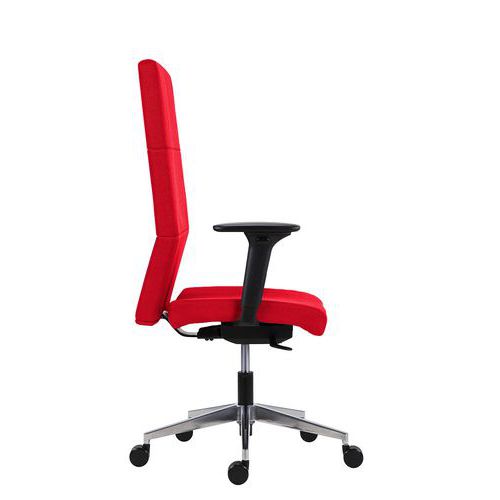 Vertika II teljesen kárpitozott irodai szék szinkronmechanikával. A szék egyműszakos munkavégzésre szolgál. Állítható mélységű, magasságú és dőlésszögű ülőlappal. 4 rögzítési pozícióval és automatikusan beállított háttámla billentési ellentartással. Gázlifttel, polírozott alumínium lábkereszttel és puha felületekre kialakított görgőkkel. Állítható magasságú, puha tapintású karfákkal, előre, hátra és oldalra is állítható dőlésszöggel.