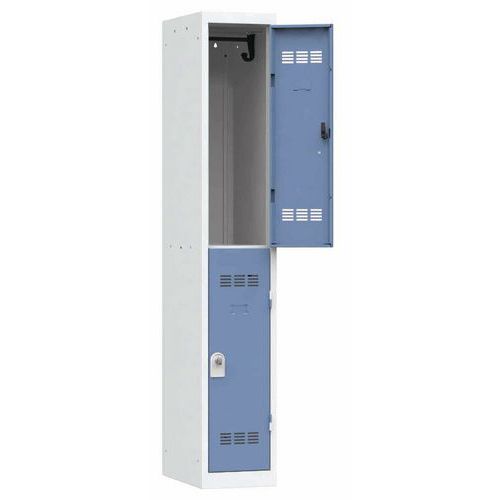 Vinco hegesztett öltözőszekrények, 1 oszlopban 2 rekesszel, 300 mm, forgóretesszel