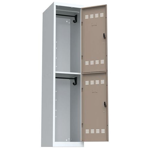 Vinco hegesztett öltözőszekrény, 1 oszlopban 2 rekesszel, 400 mm, forgóretesszel, szürke/barna Vinco hegesztett öltözőszekrény, 1 oszlopban 2 rekesszel, 400 mm, forgóretesszel, szürke/barna