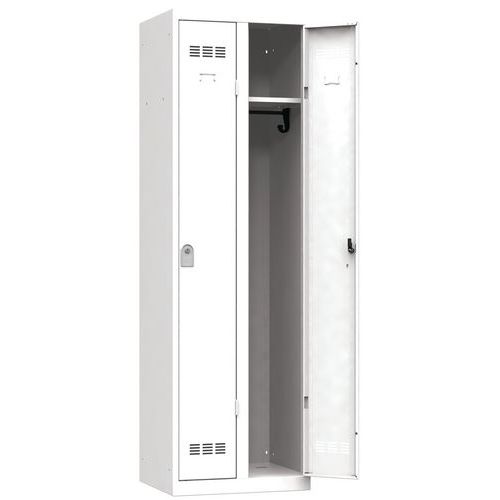 Vinco hegesztett öltözőszekrény, 2 rekeszes, 300 mm, hengerzárral, fehér/fehér