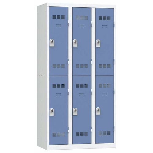 Vinco hegesztett öltözőszekrény, 3 oszlopban 6 rekesszel, 300 mm, forgóretesszel, szürke/kék Vinco hegesztett öltözőszekrény, 3 oszlopban 6 rekesszel, 300 mm, forgóretesszel, szürke/kék