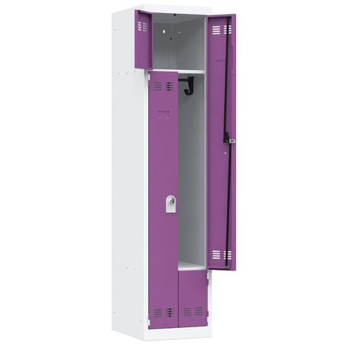 Vinco hegesztett öltözőszekrény, Z-ajtóval, 2 rekesszel, forgóretesszel, szürke/lila Vinco hegesztett öltözőszekrény, Z-ajtóval, 2 rekesszel, forgóretesszel, szürke/lila