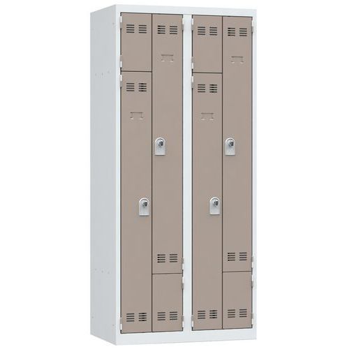 Vinco hegesztett öltözőszekrény, Z-ajtóval, 4 rekesszel, forgóretesszel, szürke/barna Vinco hegesztett öltözőszekrény, Z-ajtóval, 4 rekesszel, forgóretesszel, szürke/barna