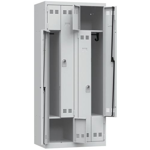 Vinco hegesztett öltözőszekrény, Z-ajtóval, 4 rekesszel, forgóretesszel, szürke/szürke Vinco hegesztett öltözőszekrény, Z-ajtóval, 4 rekesszel, forgóretesszel, szürke/szürke