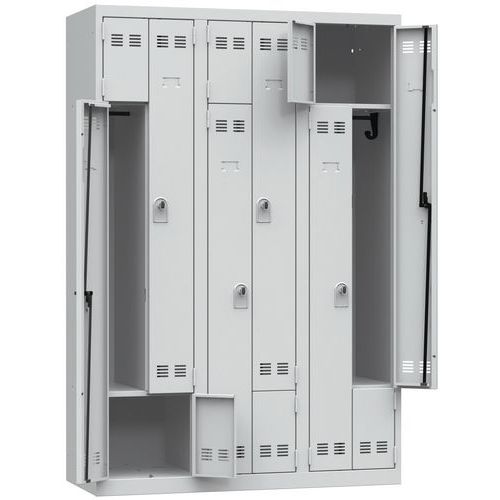 Vinco hegesztett öltözőszekrény, Z-ajtóval, 6 rekesszel, forgóretesszel, szürke/szürke Vinco hegesztett öltözőszekrény, Z-ajtóval, 6 rekesszel, forgóretesszel, szürke/szürke