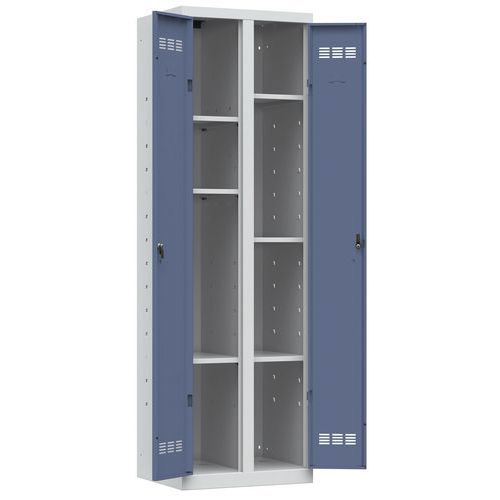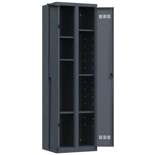 Hegesztett többcélú szekrény 0,7 mm vastagságú acéllemezből. Több részre osztott belső tér szerszámok, anyagok stb. tárolására. Az egyes rekeszek külön-külön forgóretesszel, lakattal zárhatók (lakat nem tartozék). A szellőzést biztosító ajtón névcímke elhelyezhető.