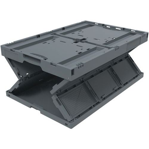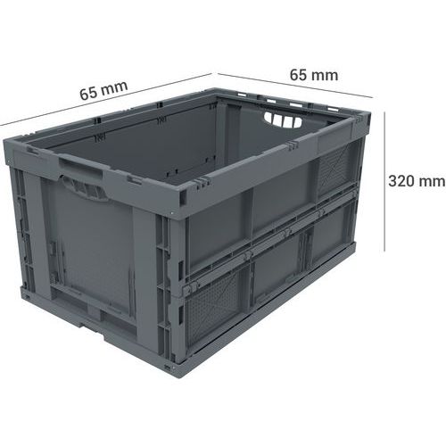 Robusztus, újrahasznosított polipropilénből készült összecsukható ládák ergonomikus, félig nyitott fogantyúkkal. A ládák kényelmesen összecsukhatók vízszintesen vagy függőlegesen. Megerősített zsanérokkal és biztonságos élekkel vannak felszerelve a halmozáshoz. A tárolóedények kisebb térfogatának köszönhetően gazdaságos. Csökkenti a tárolási és szállítási költségeket.