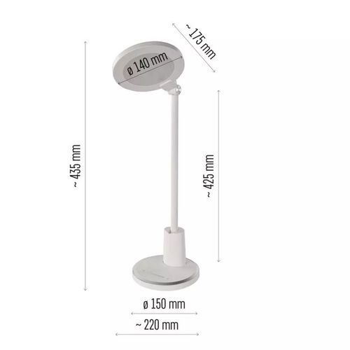Asztali lámpák rendkívül nagy, 700 lumenes fényerővel. Fokozatmentesen tompítható fényerő és állítható színhőmérséklet: hideg/semleges/meleg fehér. Optimális világítási szöget nyújtó dupla csuklóval. A tápkábel hossza 1,5 m. Védettségi szint: IP 20.