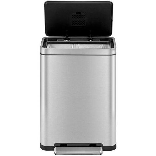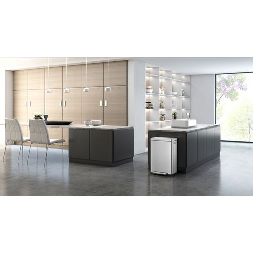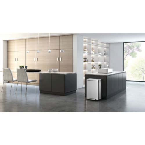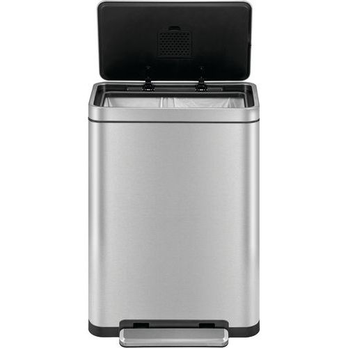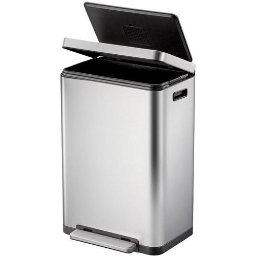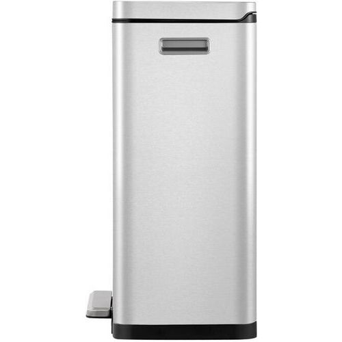Elegáns téglalap alakú szemetes extra nagy lábpedállal, szintetikus béléssel, hangtalanul záródó fedéllel és stay-open funkcióval. Ez a csiszolt rozsdamentes acélból készült hulladékgyűjtő ujjlenyomat-mentesített és nanoezüst antibakteriális bevonattal rendelkezik. A szilikon zárógyűrű biztosítja, hogy a kellemetlen szagokat hatékonyan visszatartsa a szemetesben. A fedél beépített szagszűrővel rendelkezik. A csuklós perem nyitva tartja a kukát, így a szemeteszsák cseréje és a szemeteszsák eltávolítása egyszerű.