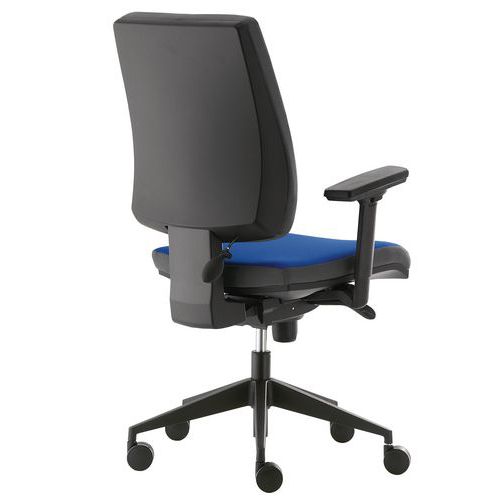 Modern irodai szék, helyes ergonómiai ülést biztosító háttámla mechanikával, minőségi kárpitozással, hideghab töltéssel. Az irodai szék ötágú nejlon csillagtalpon áll, puha padlófelületre alkalmas görgőkkel. A számítógépekhez való szék előnye az ülés magasságának és dőlésszögének kényelmes állítása.