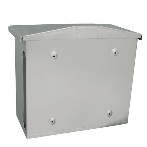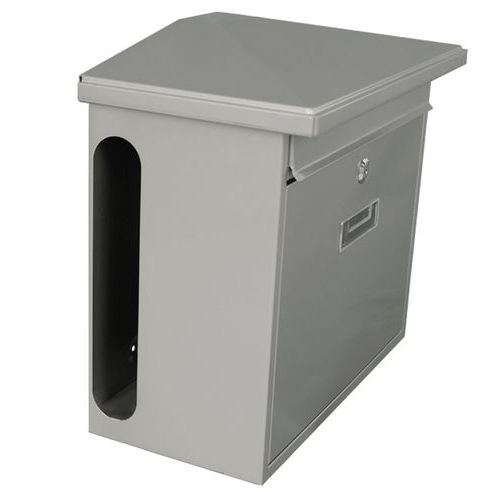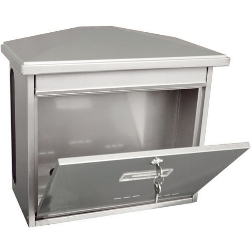 Falra szerelhető levélszekrény porszórtan horganyzott acélból, hengerzárral és kis névtábla tartóval felszerelve. A betétnyílás (32x2 cm) a fedlap mögött található. Hátul újságok számára kialakított résszel.