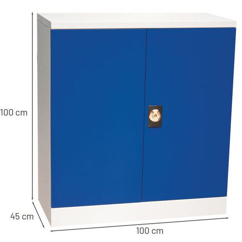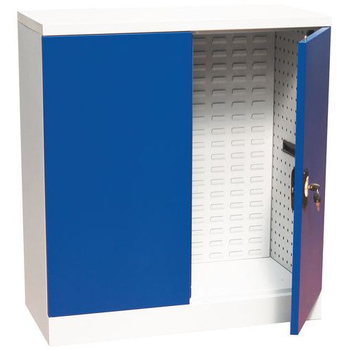A feneke tárolóval és oldalpanelekkel van felszerelve a szerszámtartó horgokra. Dupla nyílóajtóval és zárral. Az ajtók tompítóval rendelkeznek a csendes zárásért. Könnyen összeszerelhető, különleges szerszámok nélkül. Minden Manutan terméket a csapatunk tesztelt és hagyott jóvá. Biztonsági tippek: - A szekrényt egyenes felületen állítsa fel. - Erősítse a falra vagy a válaszfalra megfelelő rögzítéssel. - Ügyeljen arra, hogy ne lépje túl az engedélyezett teherbírást, és ügyeljen a teher megfelelő eloszlására. Jótállás: 10 év. Max. terhelés (kg) : 150 kg Max. polcterhelés (kg) : 50 kg
